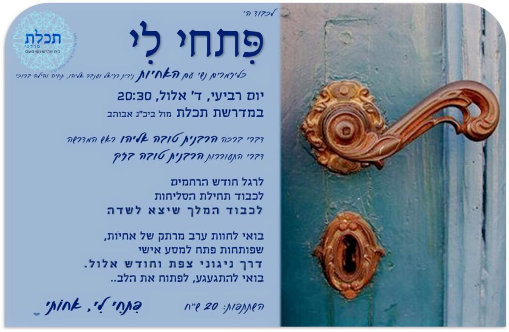 בנות המבקשות להיפתח לעבודת ה' מתוך חיבור עמוק לעץ החיים שמחי'ה את עץ הדעת.